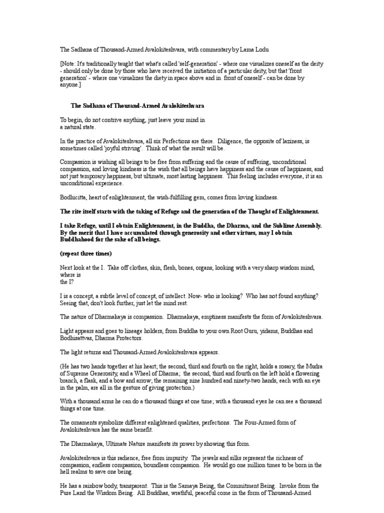 The Sadhana Of Thousand Armed Avalokiteshvara With Commentary Mantra Buddhahood